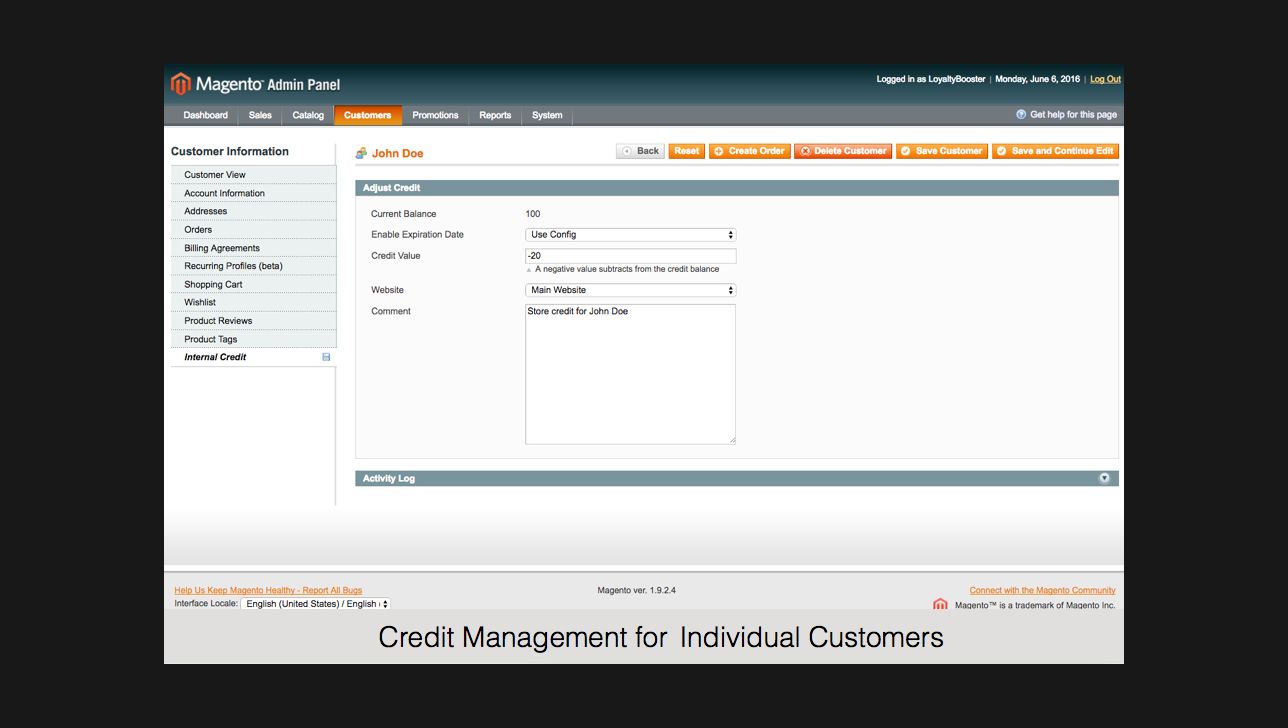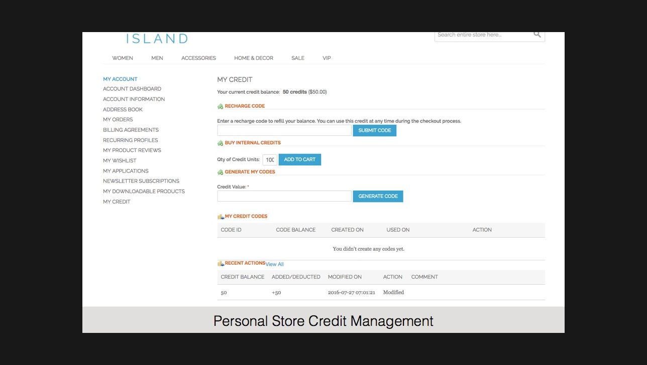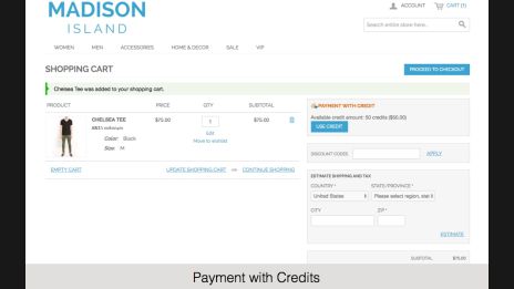 With this Magento extension you can easily add an Internal Credit payment method, effectively manage your customers’ credit funds, reward customers for special actions, set an expiration period for credits and track all credit activity with one report.