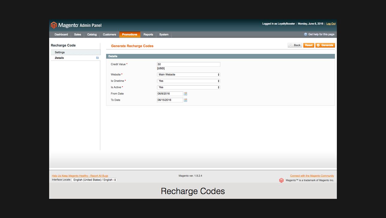 With Loyalty Reward Points Magento extension you can allow your customers to refill loyalty credits on your Magento store using Recharge Codes.