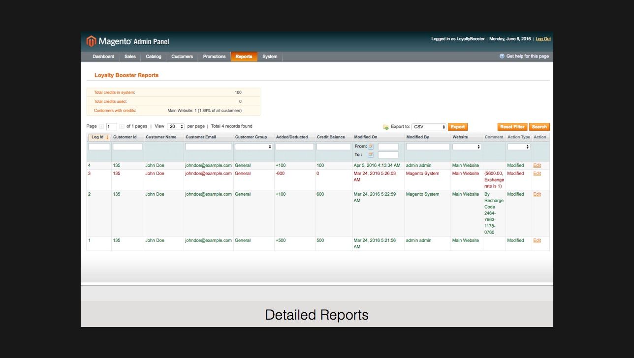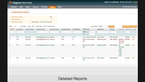 Loyalty Reward Points reports every action a customer/ store staff / the system (if you created credit rules) takes with the internal reward points. With our Magento loyalty rewards points extension you can learn: