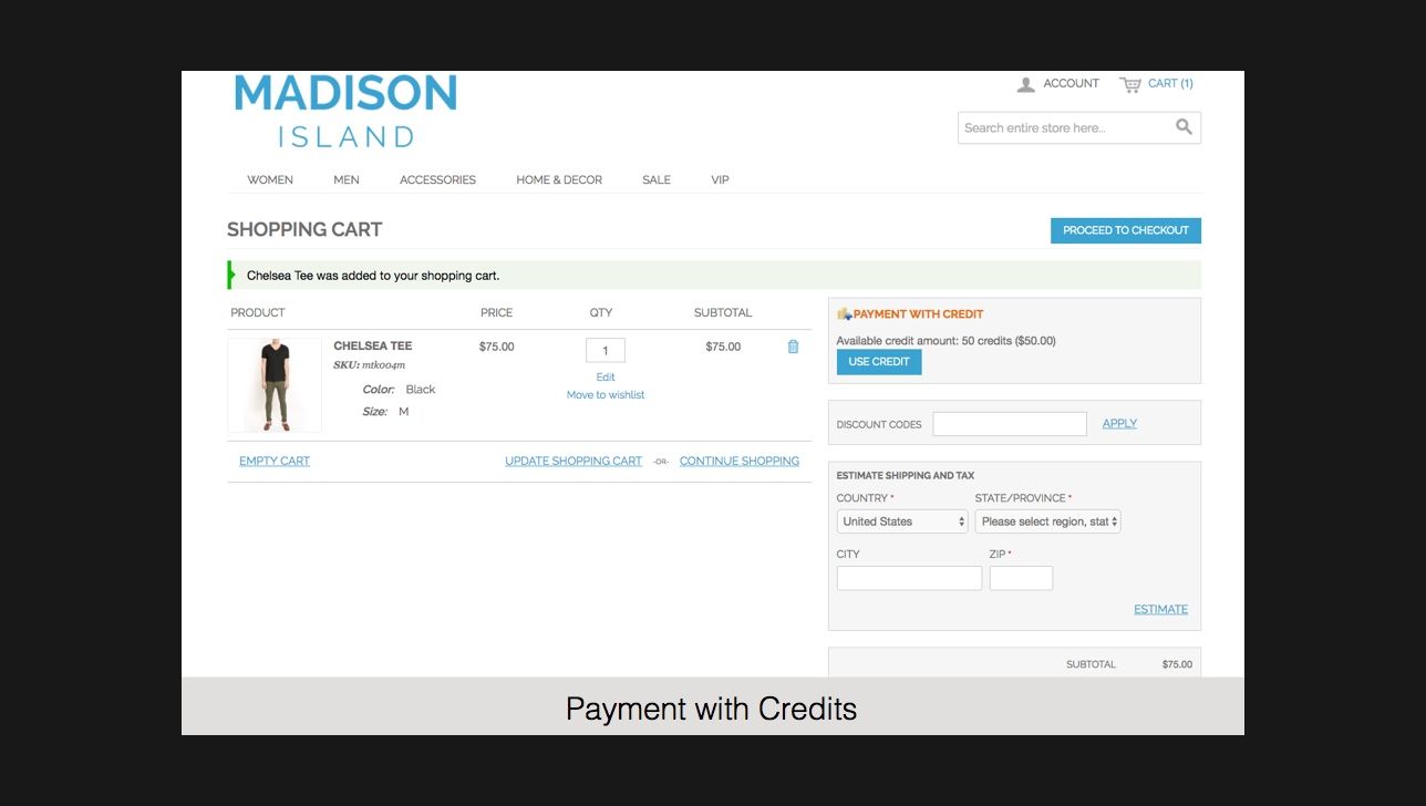 Magento store credits as payment method
