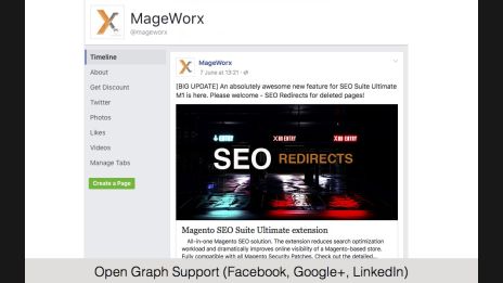 Create social exposure with automatically produced rich snippets. Influence the performance of your social links with a big image of your products along with a title and brief description.