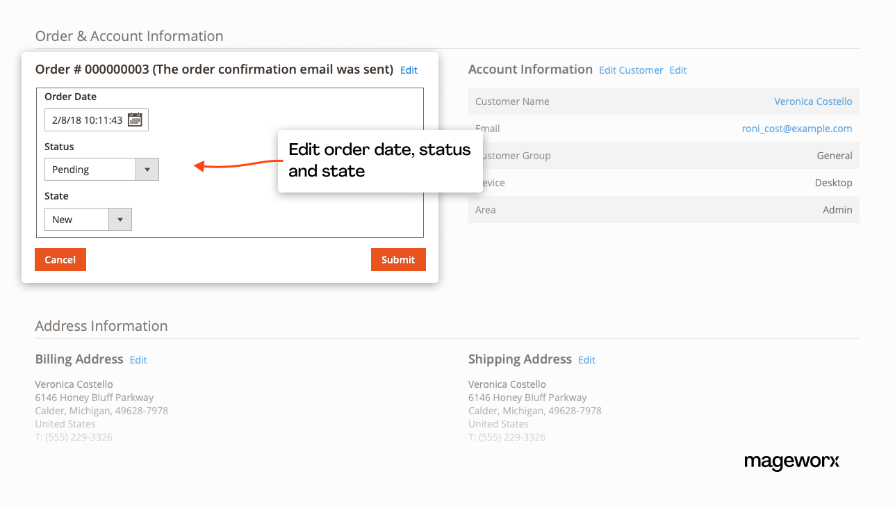 Magento 2 doesn’t offer such functionality by default. You have to cancel an order to be able to modify it. This, in turn, causes a lot of inconveniences when managing and analyzing order data.