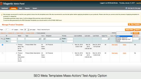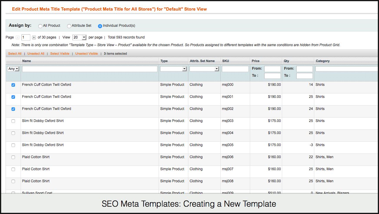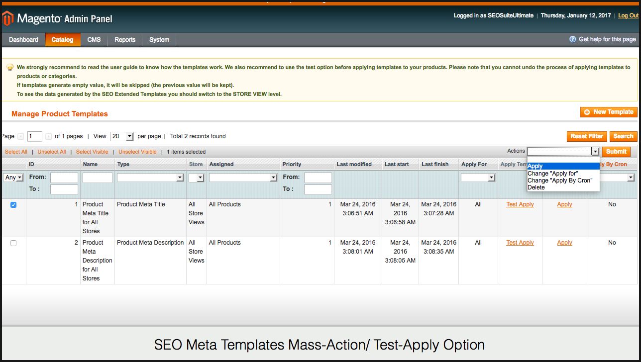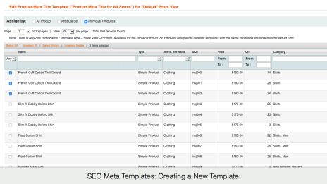 SEO Suite Ultimate Magento extension lets you assign Product Templates by: