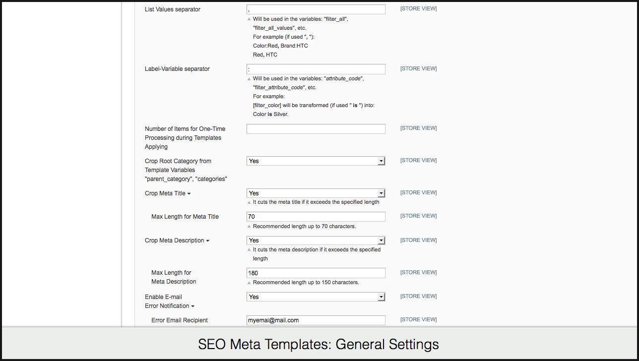 Ease the pain of adding/ editing/ managing Meta Data for multiple store pages. Automatically add UNIQUE Meta Tags for product pages.