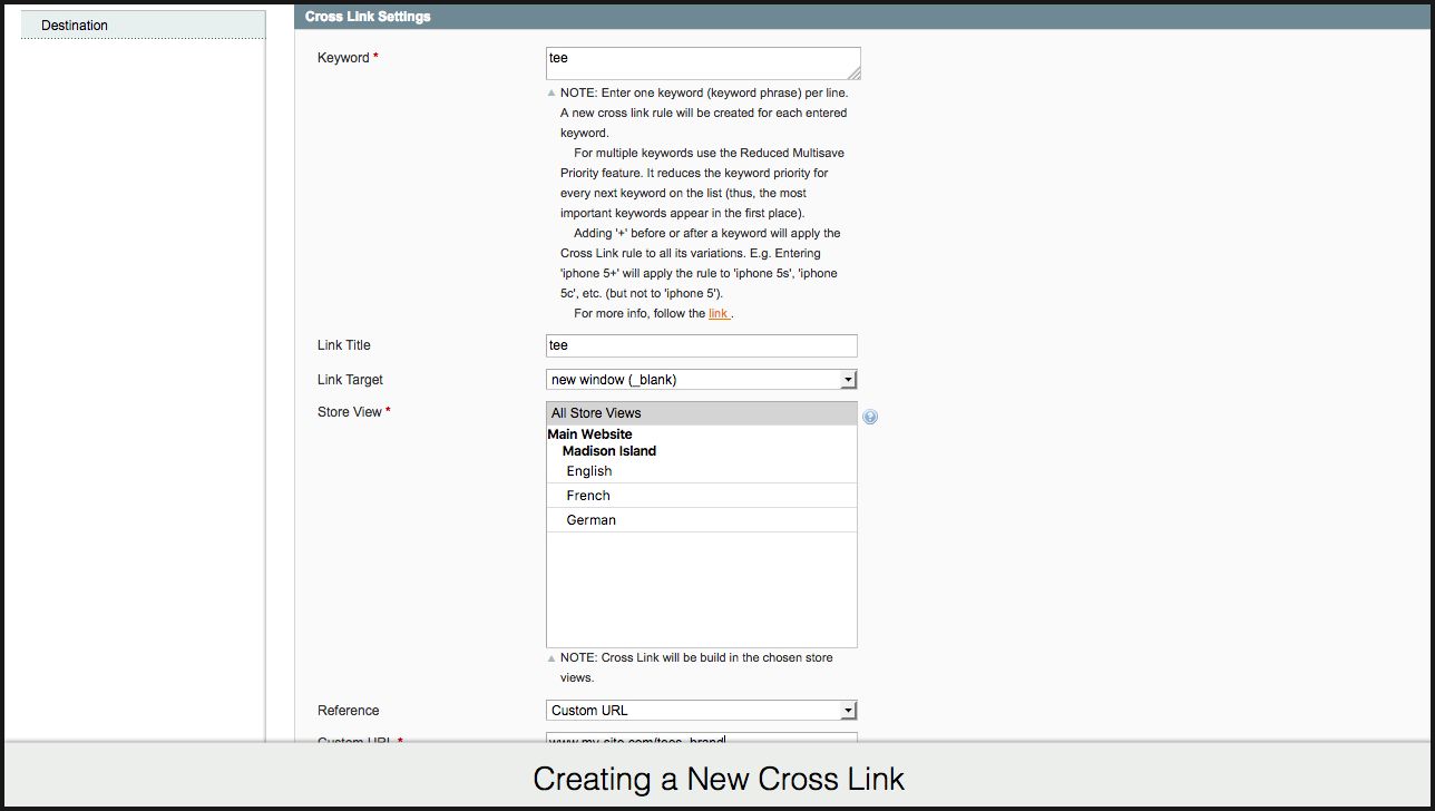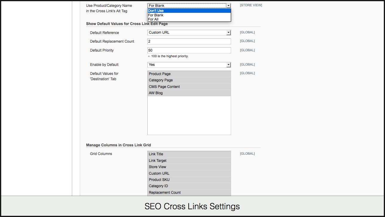 This Magento SEO extension lets you automatically link any keywords/ keyword phrases to any site pages or external sources.