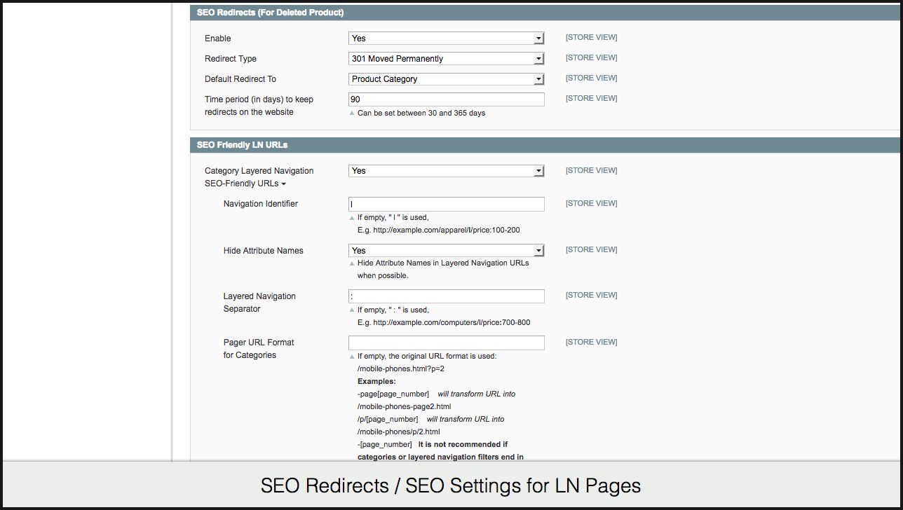 With the extension you can select any available LN attribute and manually enter a meta title, meta description, meta keywords and a full description that will be used on a page, filtered by it.