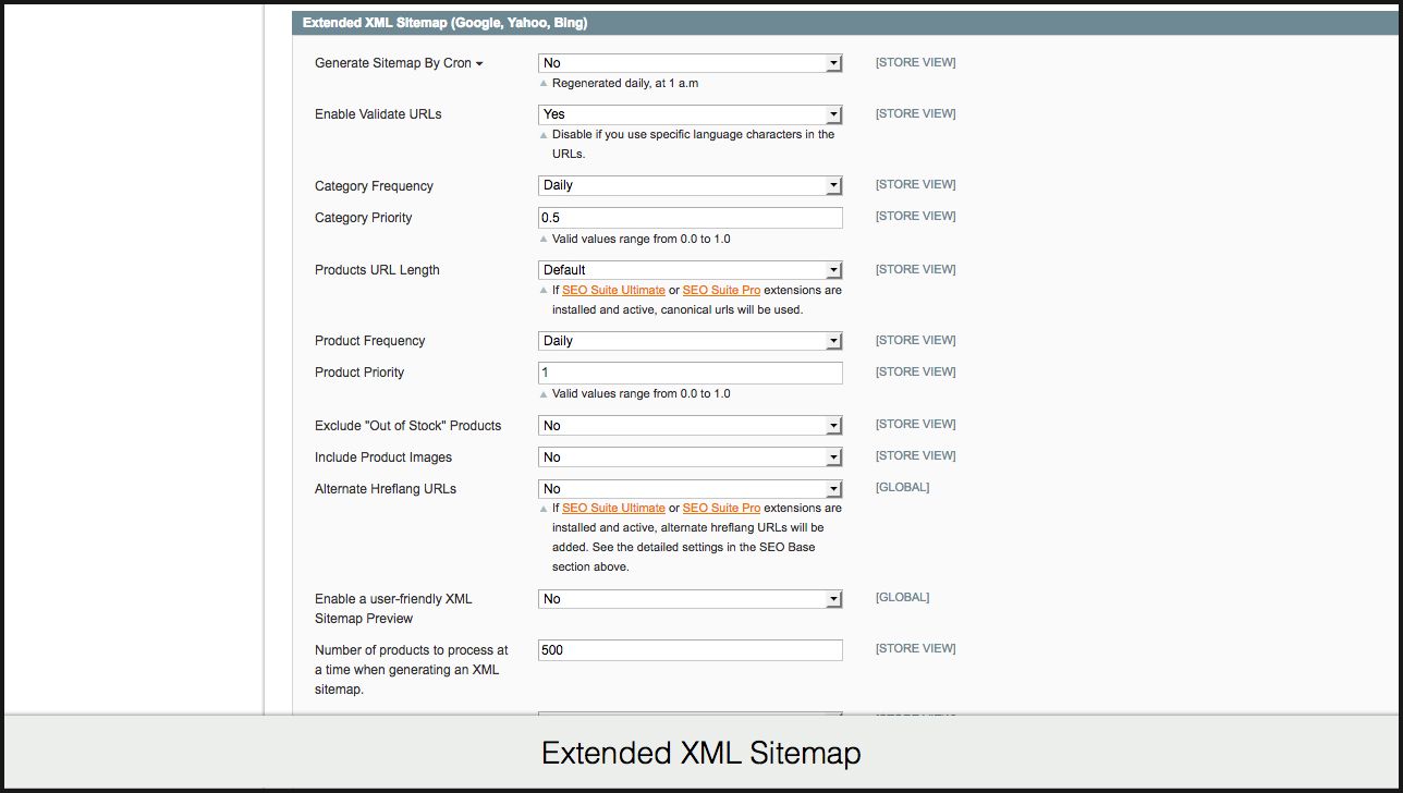 The XML file is easily customizable: you can add product images, product tags and custom links, exclude specific products, categories and CMS-pages, set frequency and priority for any tag or additional links and even hide out of stock products.