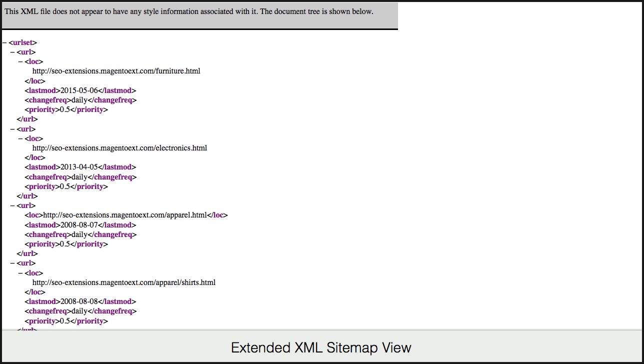 The XML Sitemap the Magento SEO extension generates is 100% error free. SEO Suite Ultimate runs a sitemap validity check, so that no broken file ever replaces the correct one while indexing.