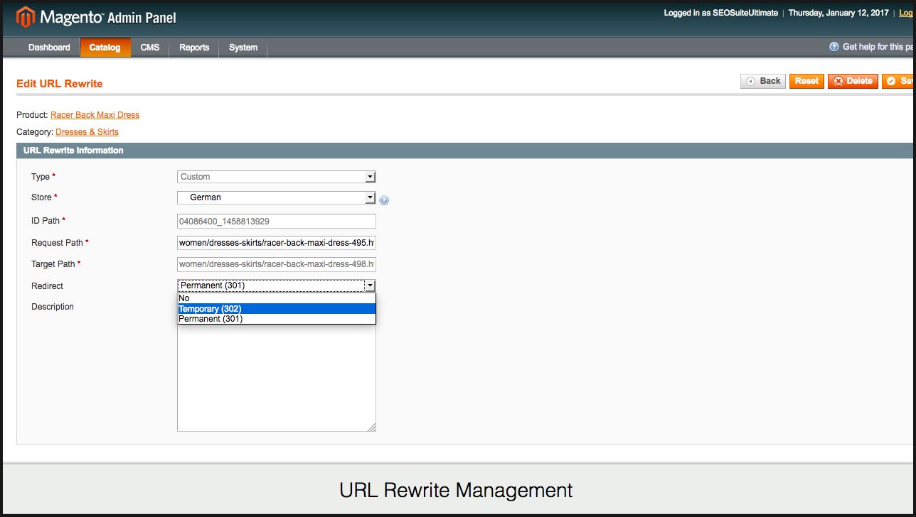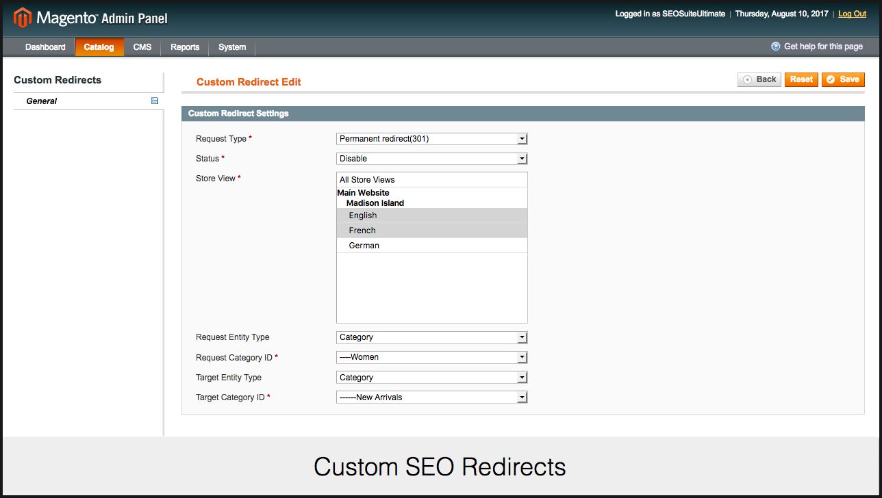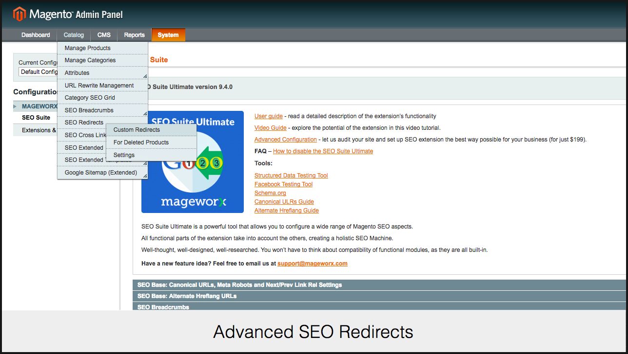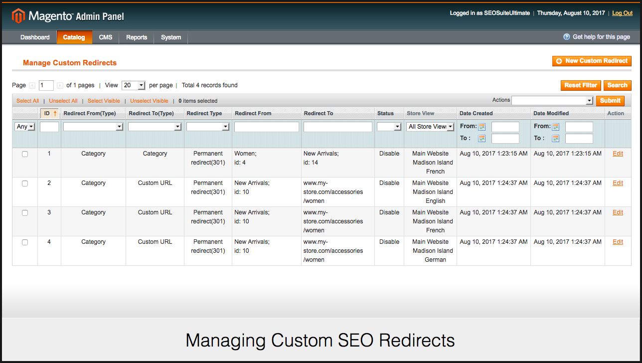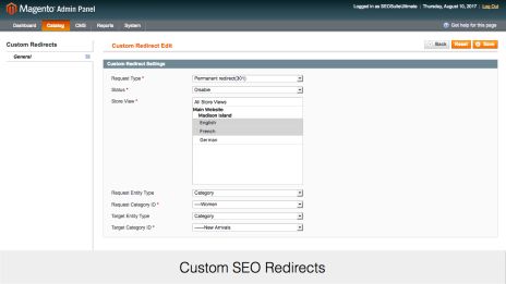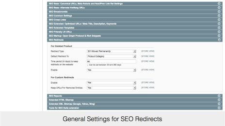 Also, with the extension you can create Custom Redirects to/from any product, category, CMS page or custom URL.