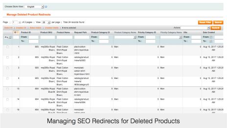 By creating 301/ 302 redirects for deleted products/categories, you can make sure that the search engines and users will always land on the right page.